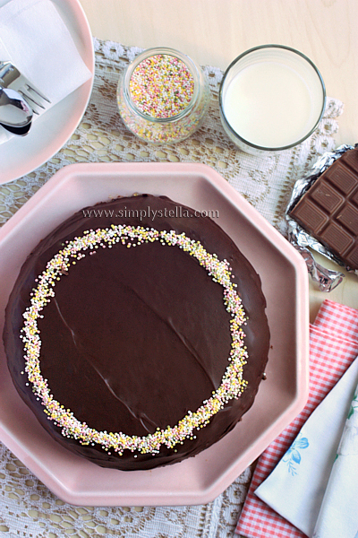 Tanto per rendere la torta un po' più pasticciosa, l'ho farcita con della marmellata e ricoperta con uno strato di glassa morbida al cioccolato fondente (la stessa usata per la Sacher). Una goduria!