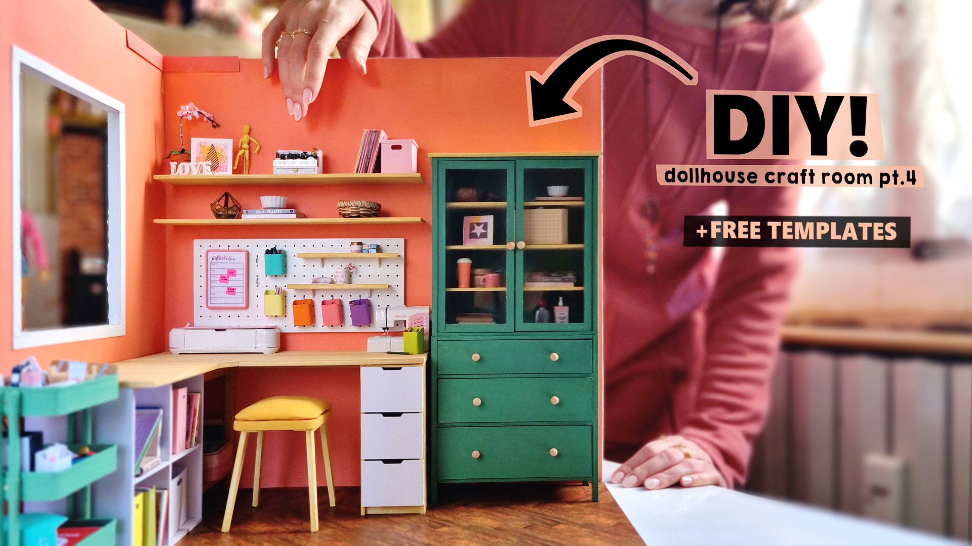 Learn how to make a miniature craft room (and a bunch of wall décor) for your Barbie dolls using mostly paper! A free printable template is provided; you'll find the download link in the video.