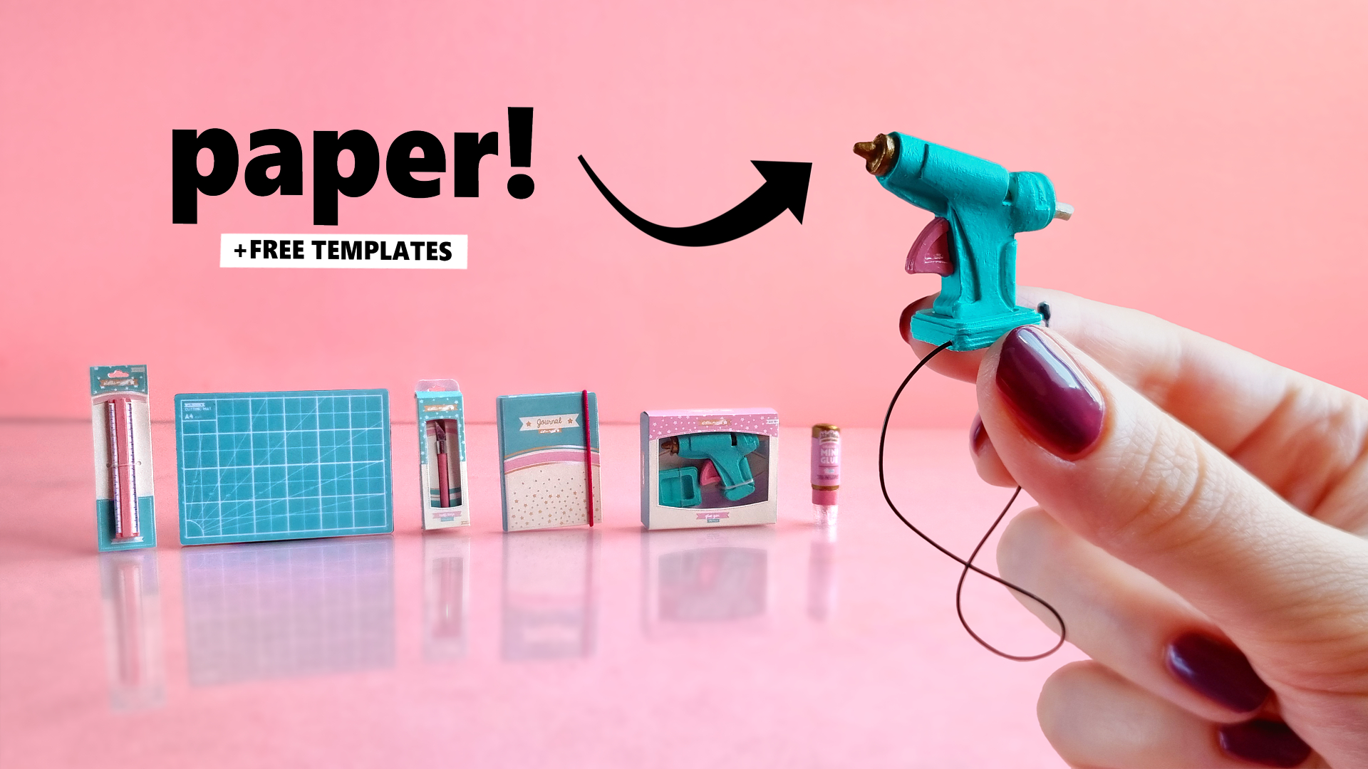 Learn how to make a set of miniature craft supplies for your Barbie dolls using mostly paper! A free printable template is provided; you'll find the download link in the video.